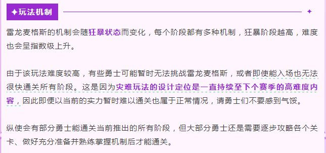 灾难雷龙为全新的委托周常本,每周可以进入一次,有练习模式,奖励主要有白金属性徽章、白金属强徽章、稀有级卡包、神器级卡包、终极奖励为神器级卡包里的狂暴雷龙卡片,为腰带部位毕业附魔道具。